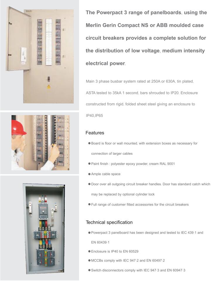 ■ Powerpact 3 panelboard has been designed and tested to IEC 439-1 and EN 60439-1■ Enclosure is IP 40 to EN 60529